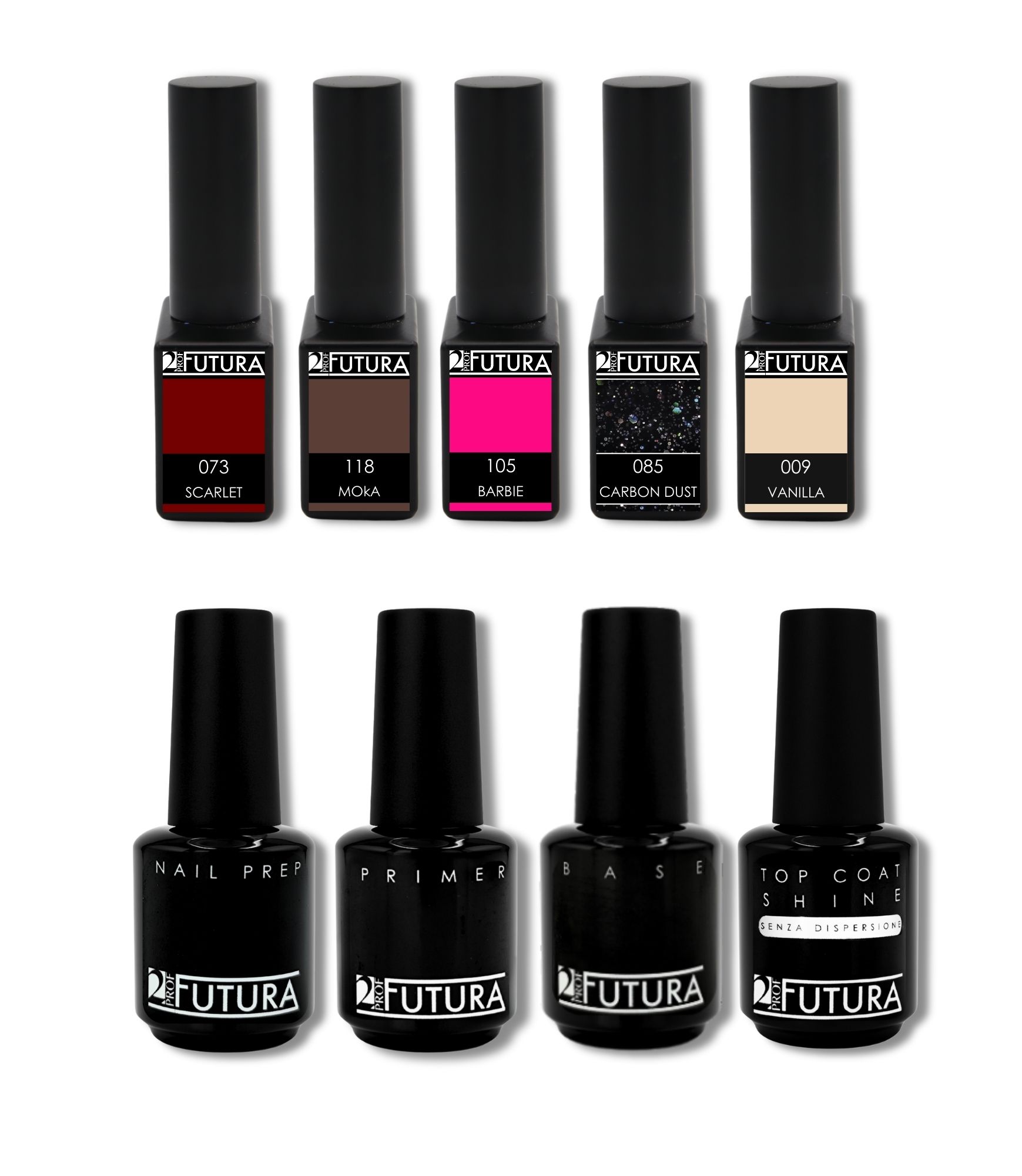 Ideale per saloni professionali e appassionate di nail art, il Kit Semi-Pro Starter ti introduce alla rivoluzionaria formula iper-pigmentata dei semipermanenti Futura. Questo set completo include prodotti di preparazione, cinque tonalità d’impatto e un top coat ultra-brillante, per manicure con colore pieno.